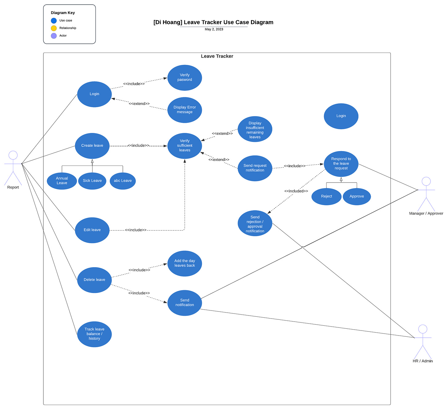 During the app-building journey, we use UML diagram to visualize how the app would work and identify any potential issues before starting to build. Given the above core functionalities and user flow, I've crafted a UML diagram tailored specifically for the Leave Tracker App: