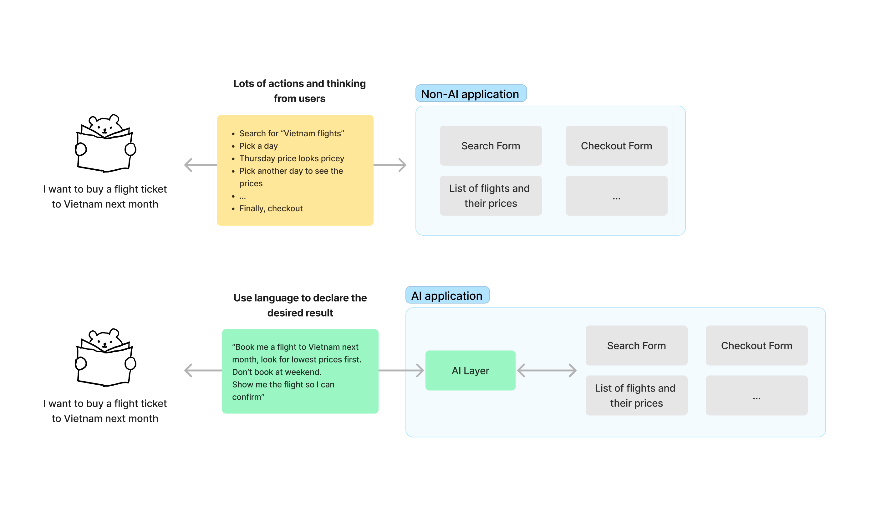 Therefore, in an AI-based product, AI acts as a middle layer between users and the underlying program, capable of interpreting both natural and programming languages.